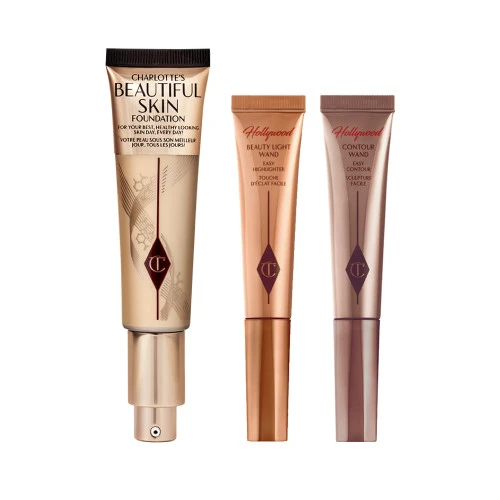 This trio features my WORLD FAMOUS magic wands of makeup, Hollywood Contour Wands to contour and sculpt, and Beauty Light Wands to blush and GLOW, with my NEW! buildable, medium-coverage, hydrating Charlotte’s Beautiful Skin Foundation for a natural, healthy looking, BEAUTIFUL finish!