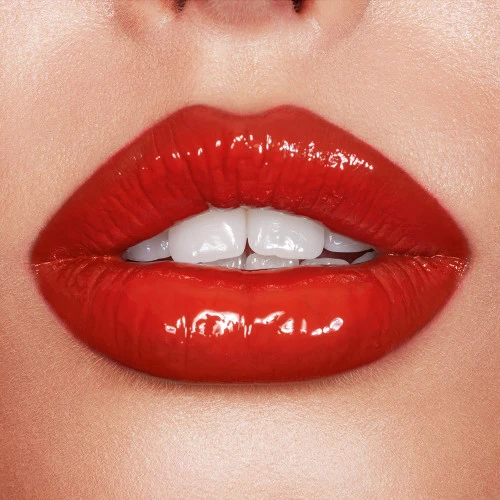 Highly-pigmented and super hydrating, Latex Love in Studio 64 is a statement, electric red lip gloss with warm orange undertones and a mirror-shine finish.