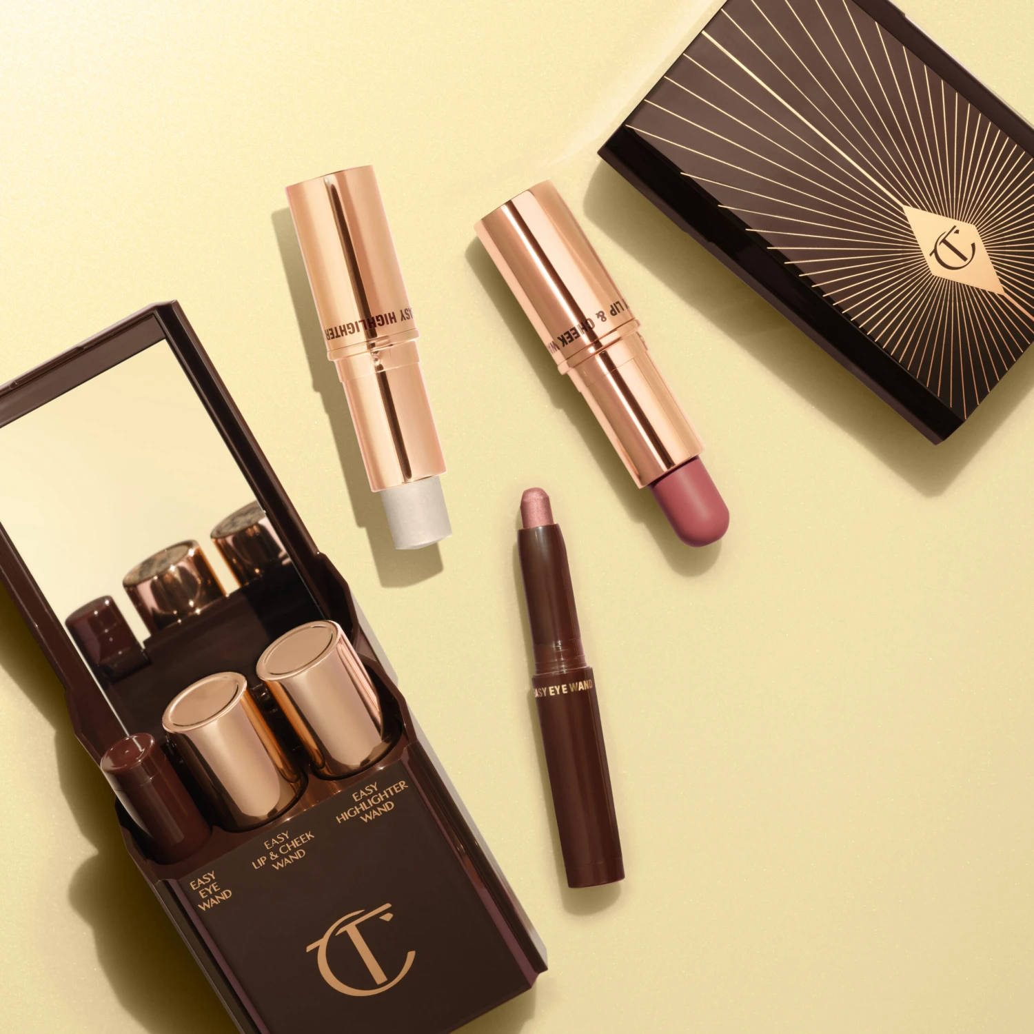 - Easy Lip & Cheek Wand in Sun-Kissed Lips/Cheeks: An easy swipe-on, soft-matte cream lip and cheek wand in a buildable dreamy pink shade.